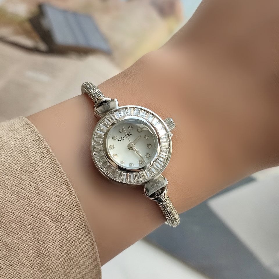 ساعت صفحه تنیسی رویال • قطر صفحه 1/8 cm • بند مارشالی قابل تنظیم • دور صفحه نگینهای تنیسی • مناسب هر اندازه مچ دست