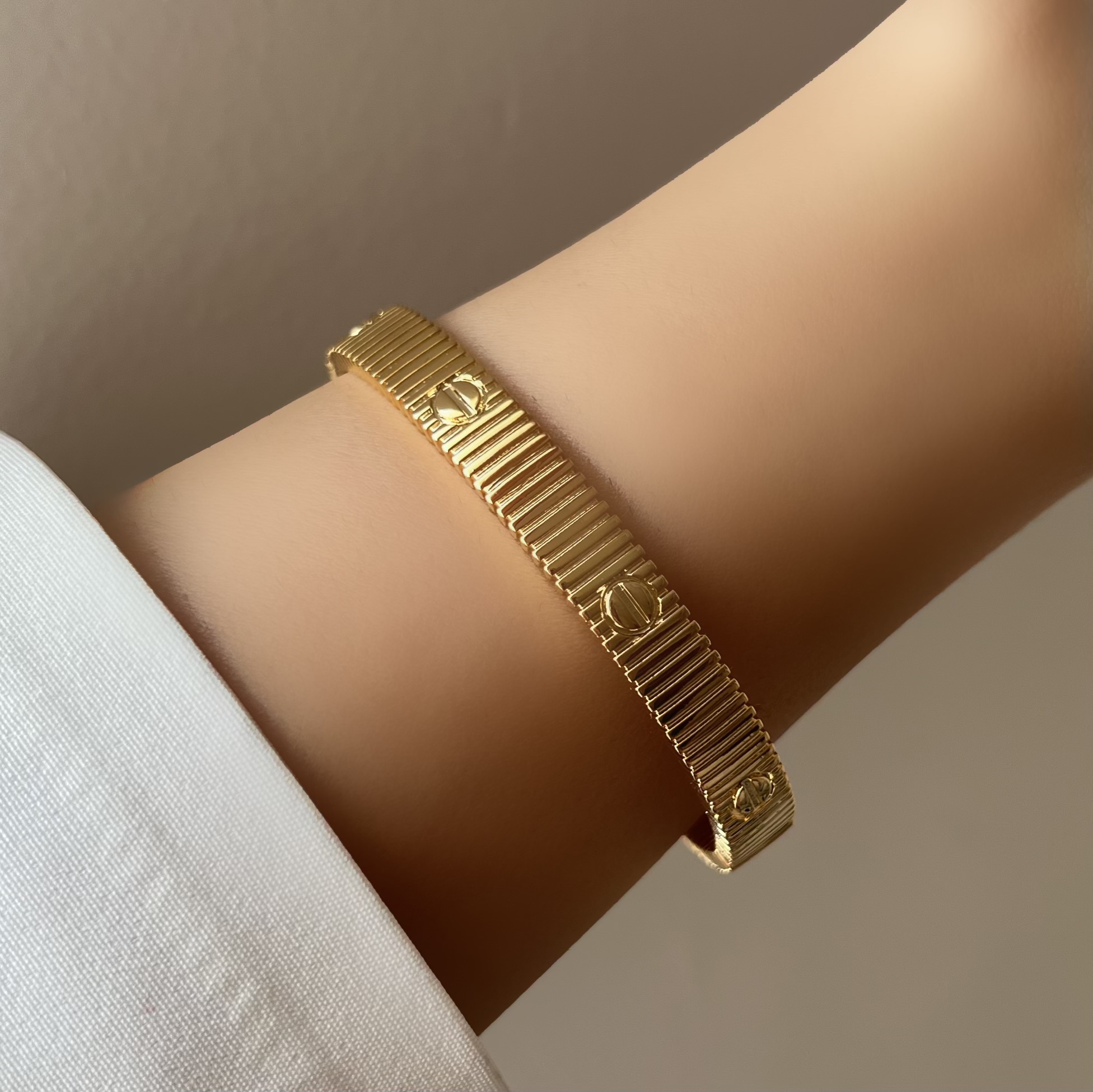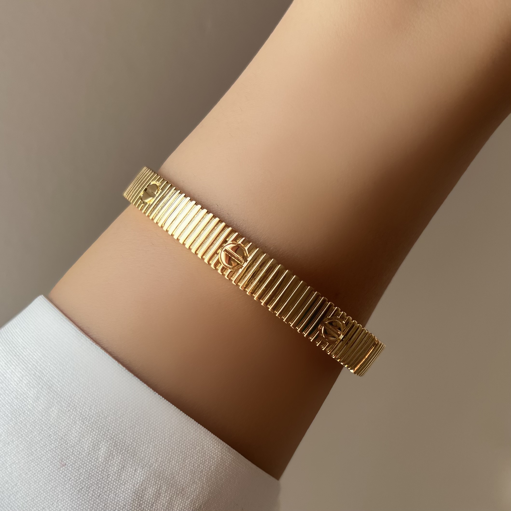 بنگل unlimited کارتیه طرح طلا • تا دور مچ 16cm قابل استفاده است • آبکاری فوق با کیفیت • قطر کار 7-6 ml